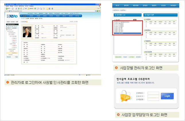인사관리, 급여관리, 근태관리, 퇴직관리